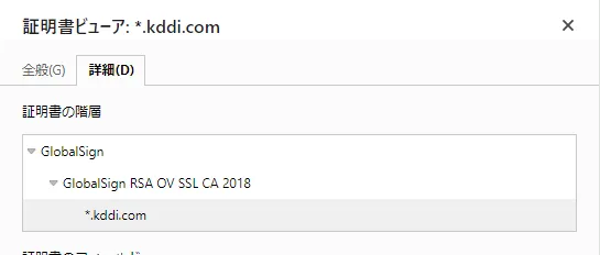 また、前述のように、証明書の信頼性を担保するためにずっと上位の証明をたどっていく、ということにならないよう、Webブラウザなどはルート認証局の自己署名証明書を内蔵しているかを確認します(Chromeであれば、証明書ビューアから以下のように階層を確認できます)