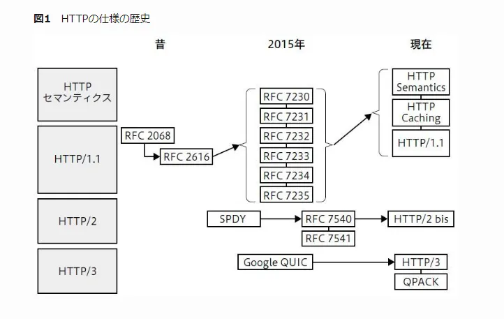 HTTPのバージョンについては、以下のような変遷があり、現在も新たにHTTP/3がRFC9114として2022年に仕様策定されました。
