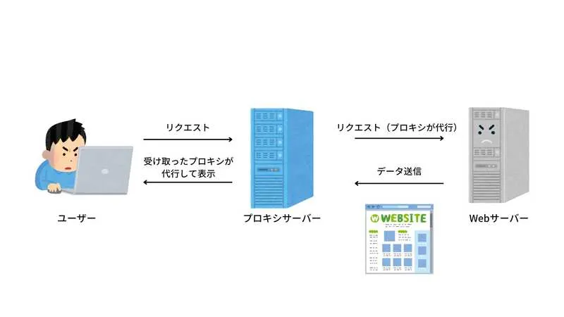 端末からプロキシサーバーを介してWebサイトにアクセスすると、アクセスしたWebサイト側に端末の情報が渡ることはありませんが、プロキシサーバーにはアクセス情報がログとして残ります。