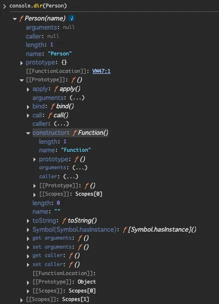 // 出力ƒ Person(name) { this.name = name; this.greet = function () { console.log(`Hi, I'm ${this.name}`); };}Object.getPrototypeOf(Employee)