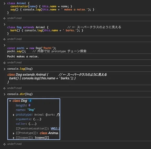 また、現在のJavaScript界隈ではclass構文が毛嫌いされている節がある(と思っている)が、この傾向についても自分の中で腹落ちさせたい。